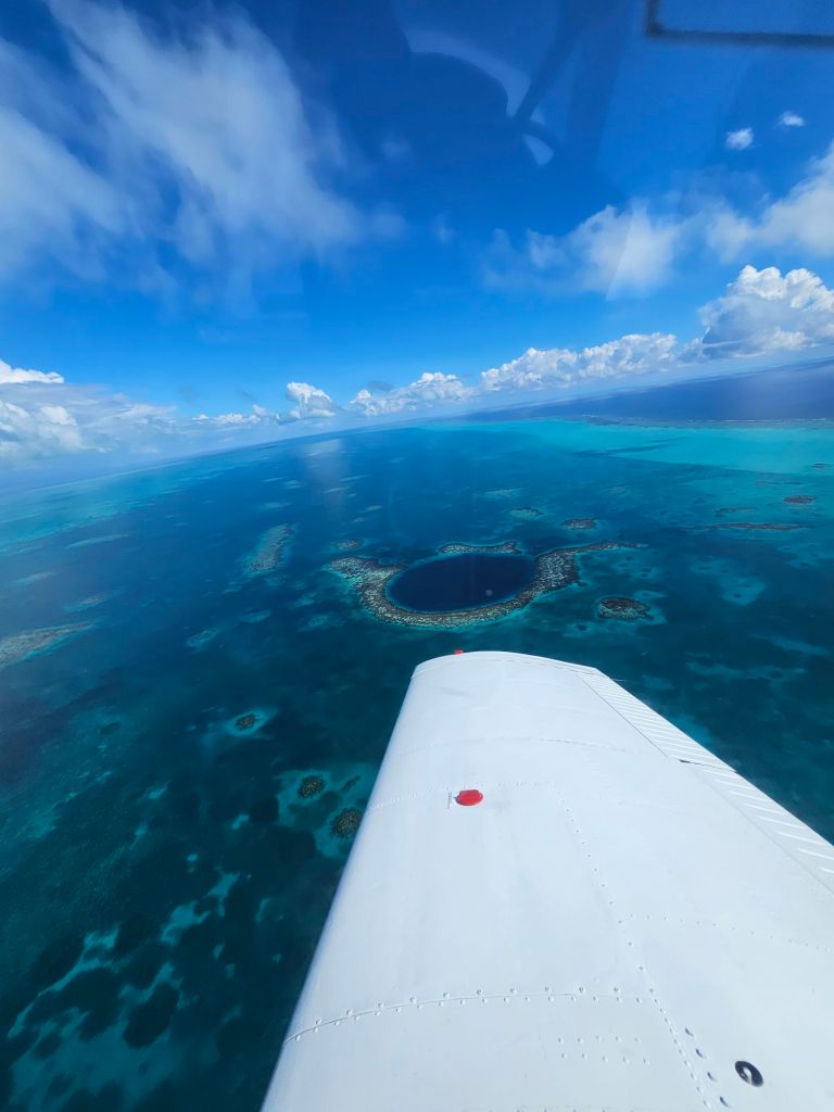 For something more epic, consider a flight over the Blue Hole—a massive underwater sinkhole that looks like a black eye from above. It’s one of the most famous sights in Belize, and flying over it will leave you in awe. The flight is a bit of a splurge, usually around $150–$200, but it’s totally worth it to see this natural wonder from the air.